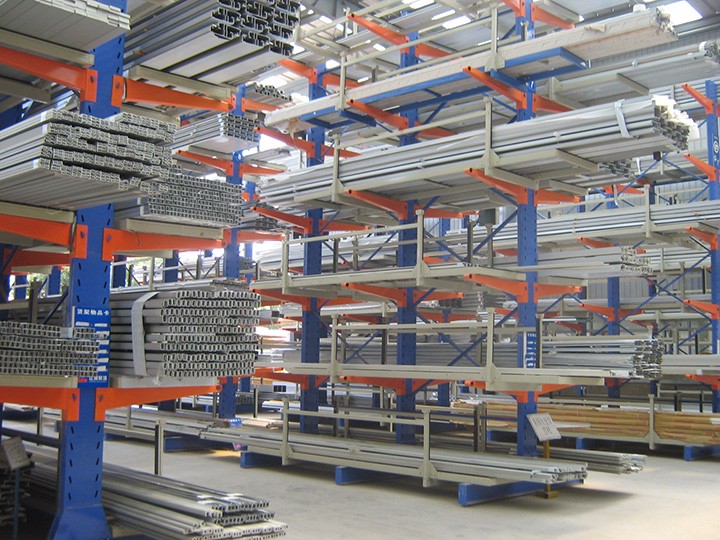 懸臂可以是單面或雙面,懸臂式貨架具有結構穩(wěn)定,載重能力好、空間利用率高等特點。貨物存取由叉車、行車或人工進行。