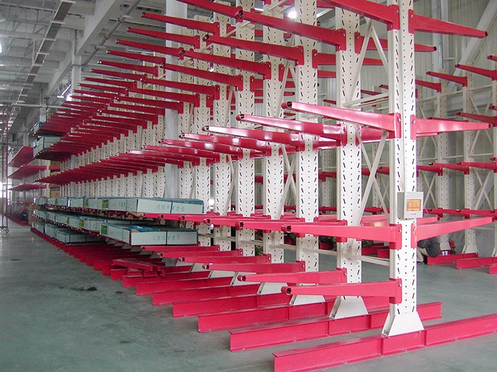 懸臂可以是單面或雙面,懸臂式貨架具有結(jié)構(gòu)穩(wěn)定,載重能力好、空間利用率高等特點(diǎn)。貨物存取由叉車、行車或人工進(jìn)行。